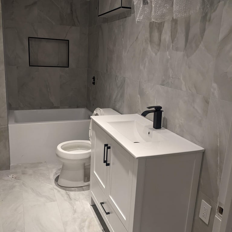 A look at real project results: bathroom renovation, framing/drywall, and flooring upgrades. Before and after photos reflect the type of work I handle — focused on solid workmanship, clean finishes, and realistic expectations.